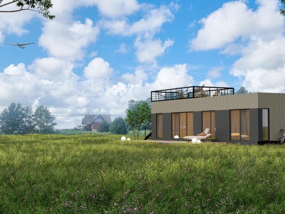 Modular houses are built using a prefabricated building technique in which whole or parts of the house are made offsite in a factory and then transported to the site. Before they leave the factory, the panels are already assembled into rooms. This technique requires a minimum finishing job made on site, therefore allowing a quick installation.