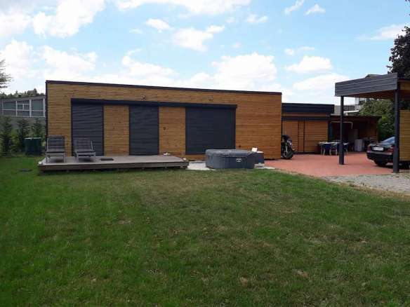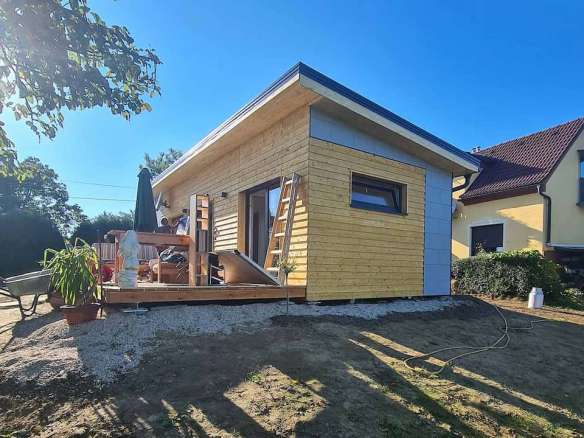 Modulhäuser werden mit einer Fertigbautechnik gebaut, bei der das Haus ganz oder teilweise in einer Fabrik hergestellt und dann zur Baustelle transportiert wird. Bevor sie die Fabrik verlassen, sind die Paneele bereits zu Räumen zusammengesetzt. Diese Technik erfordert eine minimale Nachbearbeitung vor Ort und ermöglicht daher eine schnelle Installation.