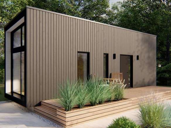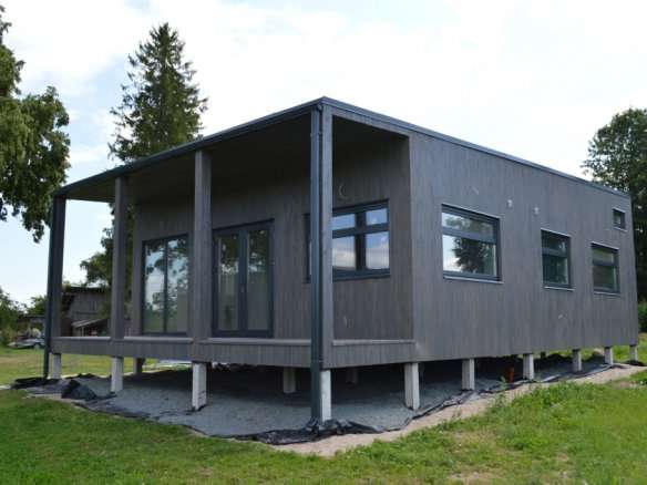 Modulhäuser werden mit einer Fertigbautechnik gebaut, bei der das Haus ganz oder teilweise in einer Fabrik hergestellt und dann zur Baustelle transportiert wird. Bevor sie die Fabrik verlassen, sind die Paneele bereits zu Räumen zusammengesetzt. Diese Technik erfordert eine minimale Nachbearbeitung vor Ort und ermöglicht daher eine schnelle Installation.