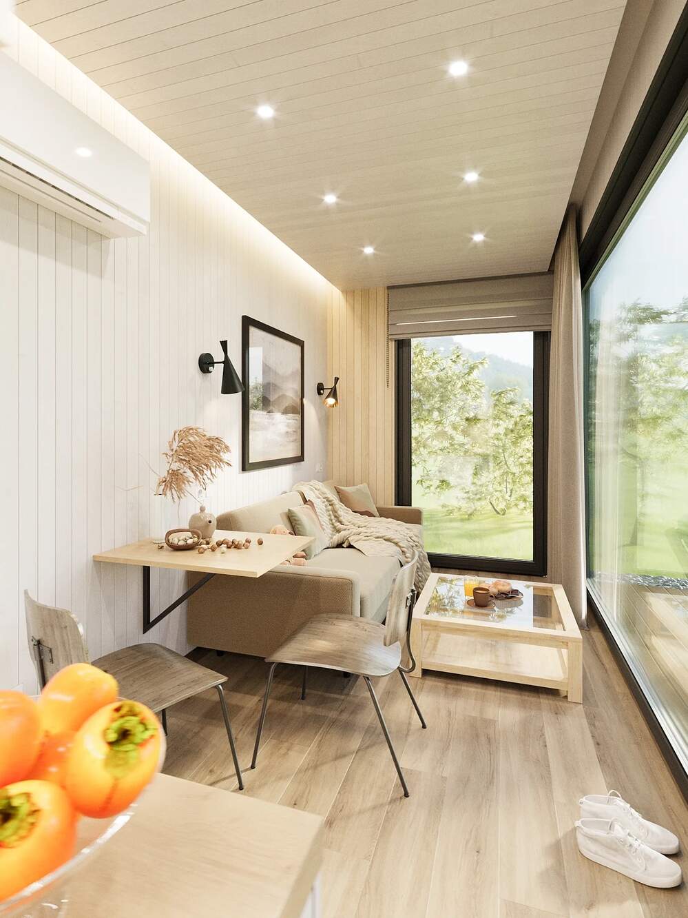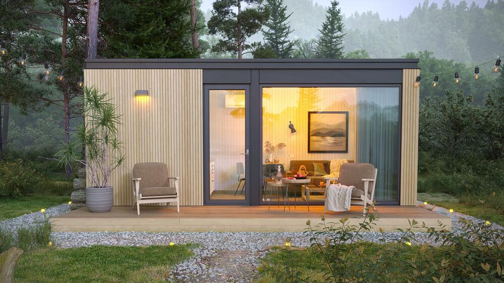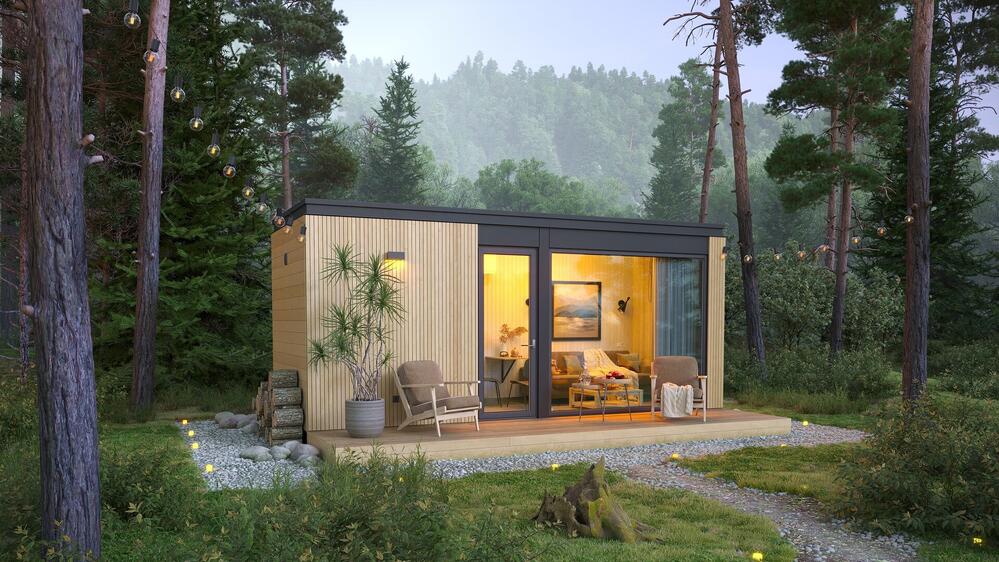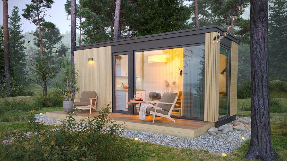 Dieses Fertighaus bietet eine Wohnfläche von 15 m², in der 2 Personen untergebracht werden können.