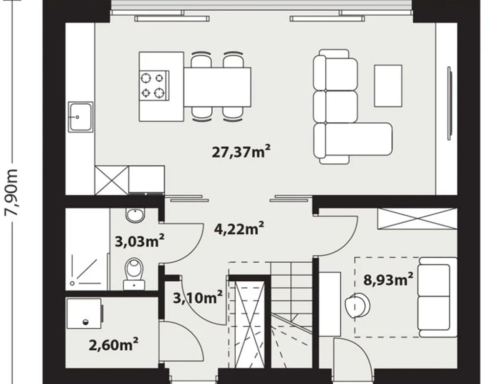 Gabi 2 ist ein Fertighaus, das von Domki Marysia, einem Fertighaushersteller aus Polen, gebaut wurde. Dieses Fertighaus bietet 70 m² Wohnfläche mit 3 Schlafzimmern und 2 Bädern.