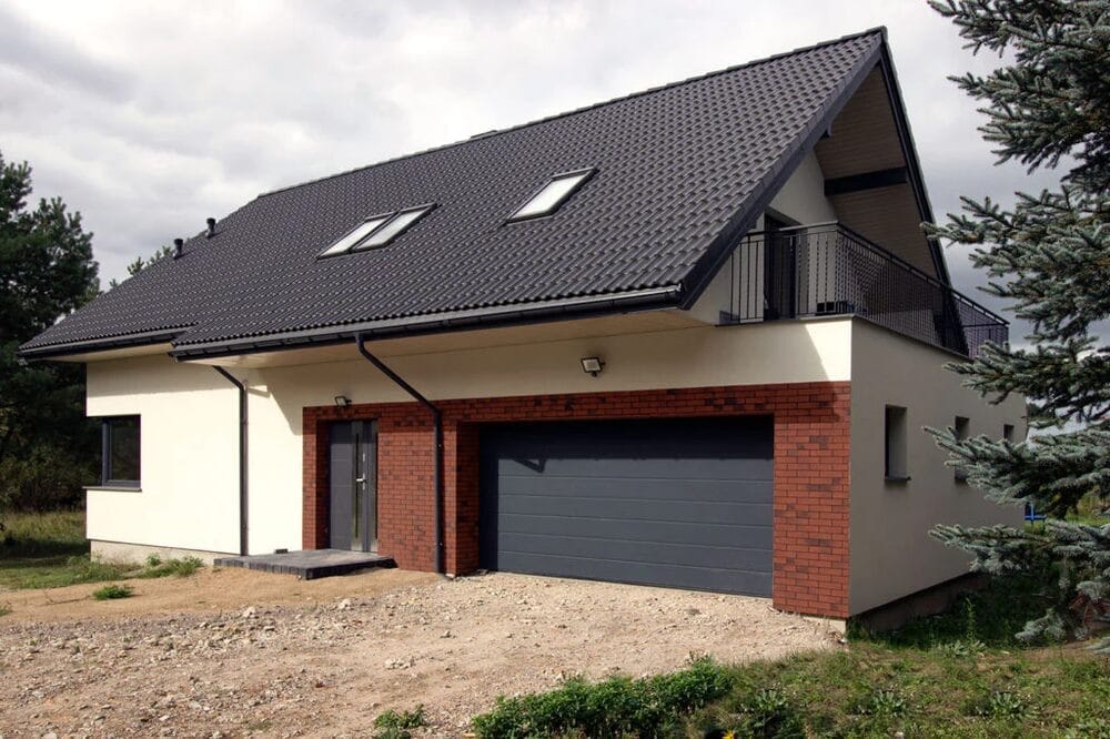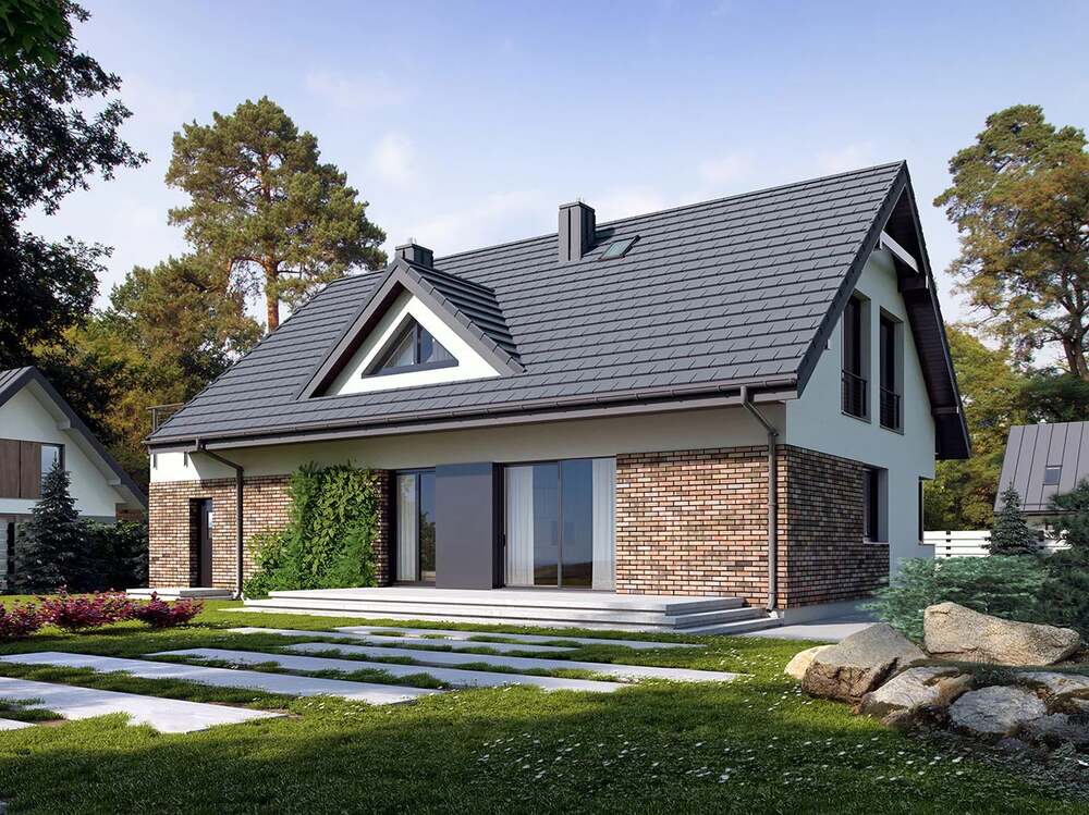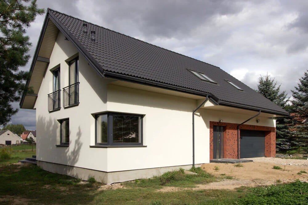 Dieses geräumige und funktionale Einfamilienhaus mit nutzbarem Dachgeschoss wurde von Domki Marysia, einem Fertighaushersteller mit Sitz in Polen, gebaut. Das Haus bietet 157 m2 Wohnfläche mit 4 Schlafzimmern und 2 Bädern.