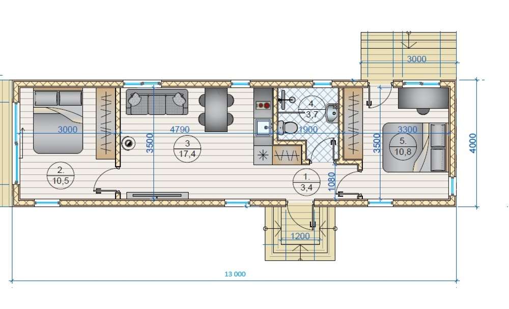 Ecospace 52 ist ein modulares Haus, das von EcoSpace, einem Hersteller von Fertighäusern mit Sitz in Lettland, gebaut wurde. Dieses Fertighaus bietet 52 m² Wohnfläche, 2 Schlafzimmer und 1 Badezimmer.