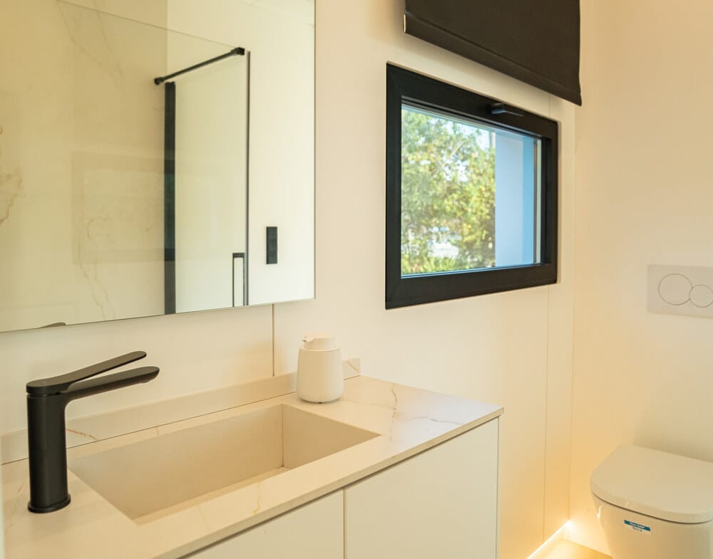Dieses Modell verfügt über ein vergrößertes Badezimmer mit einer größeren Dusche, die das Bad zu einem Ort des Komforts und der Entspannung macht. Die Küche ist zwar kompakter, aber immer noch voll funktionsfähig und befindet sich strategisch günstig in der Mitte der Wohnung. Dies ermöglicht eine einzigartige Aufteilung mit zwei unabhängigen Zimmern an den Enden, die ein perfektes Gleichgewicht zwischen Privatsphäre und Fluidität bietet.