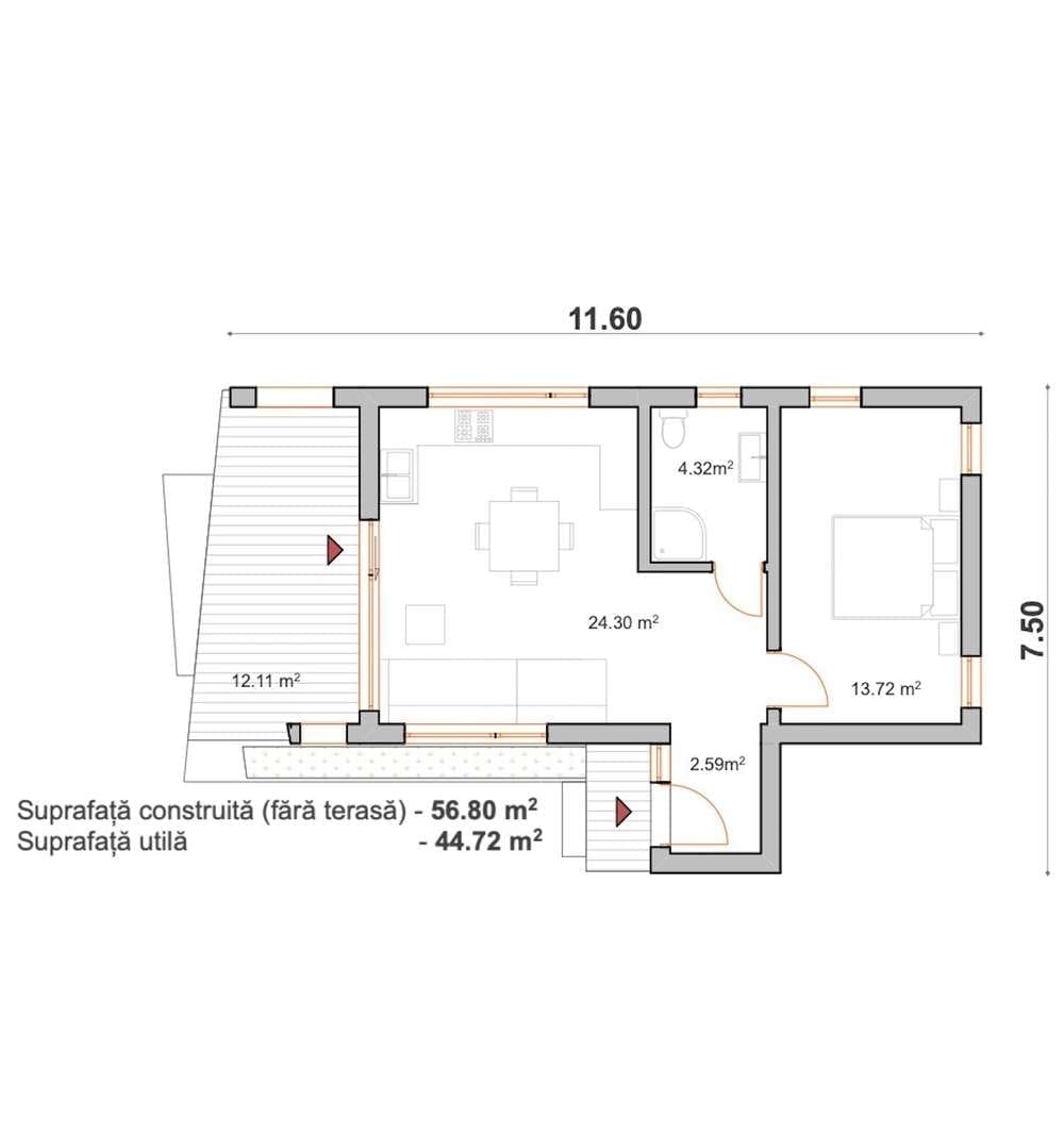 Modulo 56 ist eine modulare Hütte von Modulo House, einem Hersteller von Fertighäusern mit Sitz in Rumänien. Dieses Haus bietet 56 m² Wohnfläche mit 1 Schlafzimmer und 1 Badezimmer.