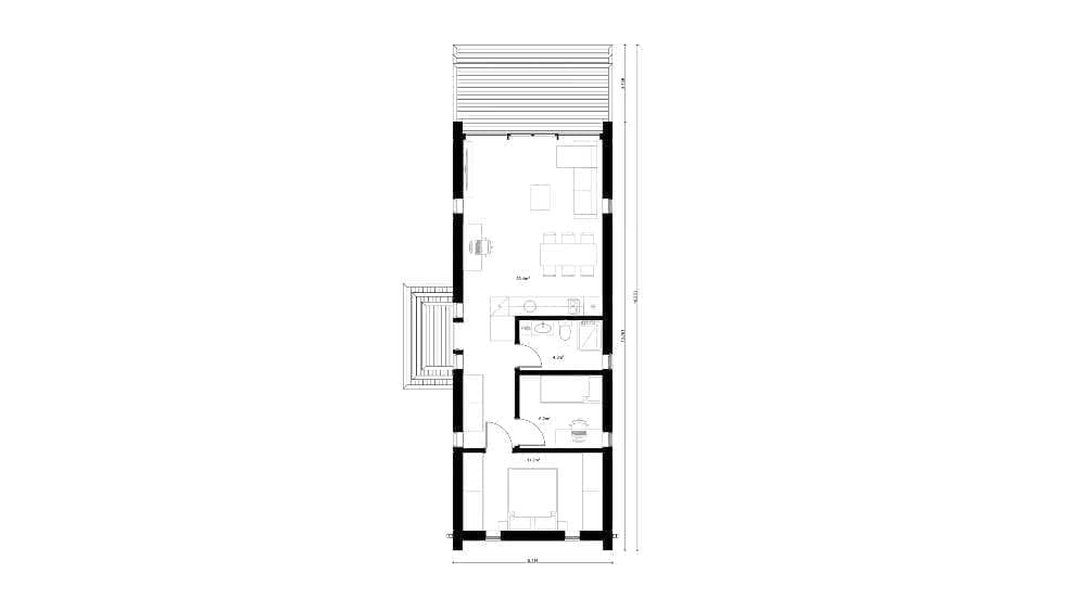 House Module 5 ist eine modulare Kabine, die von Norge House, einem Hersteller von Fertighäusern mit Sitz in Lettland. Dieses Modulhaus bietet 54,1 m² Wohnfläche mit zwei Schlafzimmern und einem Badezimmer.