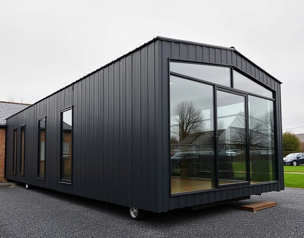 Unsere Mobilheime mit Fenster- und Türanschlüssen in elegantem Anthrazit sind die perfekte Mischung aus Design und Funktionalität.