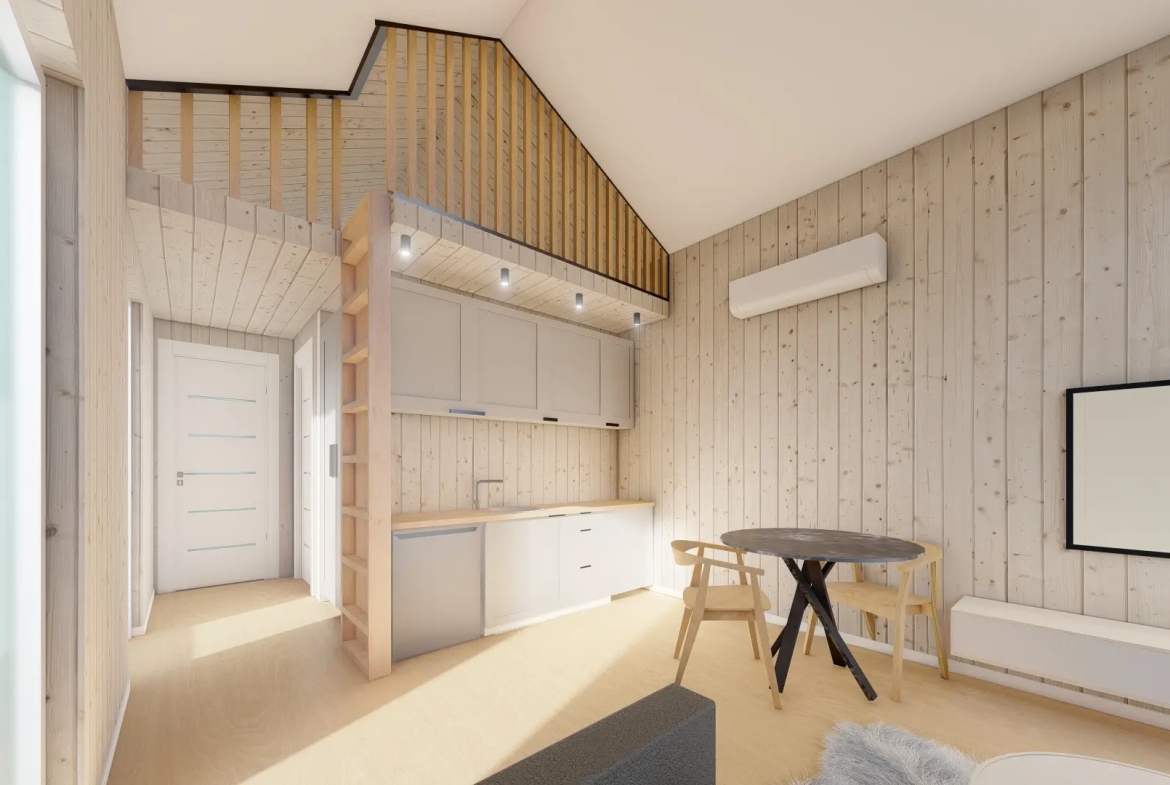 MOD 36 es una casa prefabricada construida por ModHouse, un Fabricante de casas prefabricadas con sede en Lituania. Esta casa prefabricada ofrece 36 m² de espacio habitable, con 1 dormitorio y 1 baño.