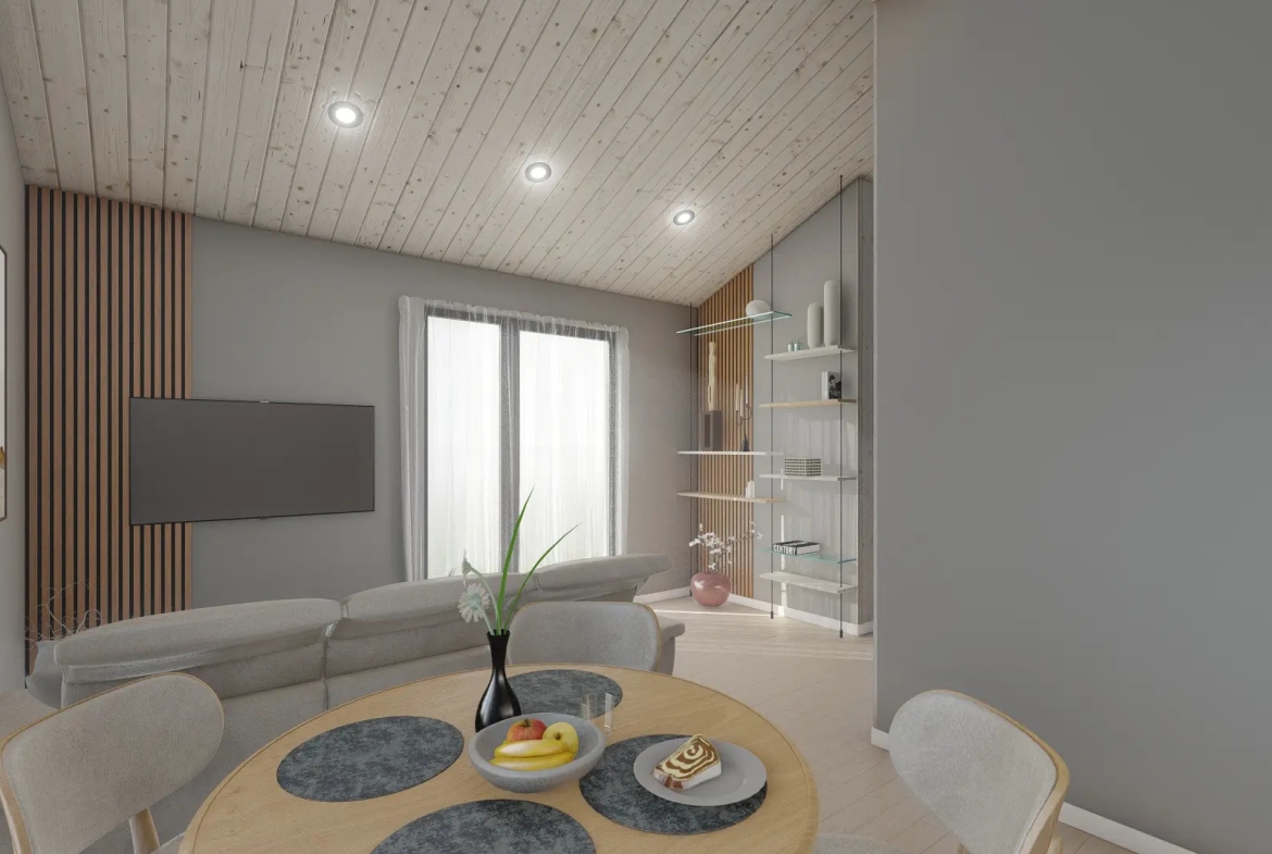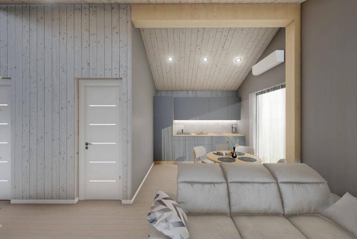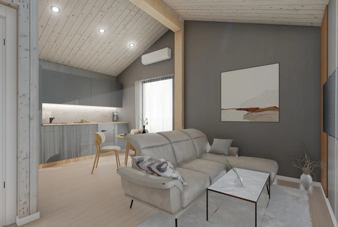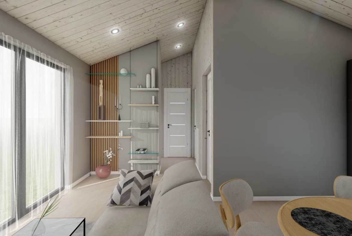 MOD 42 es una casa prefabricada construida por ModHouse, un Fabricante de casas prefabricadas con sede en Lituania. Esta casa prefabricada ofrece 49,5 m² de espacio habitable, con 2 dormitorios y 1 baño.