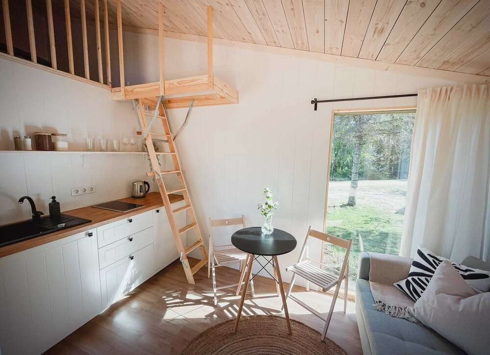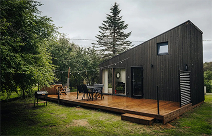 Esta cabina modular ofrece 20 m² de espacio habitable, con capacidad para 2 personas.