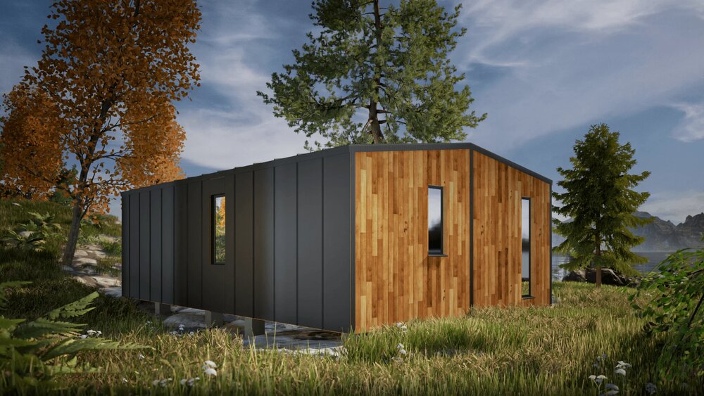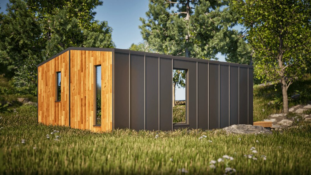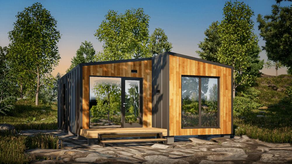 Presentamos Resonance, la versión ampliada de nuestro apreciado Mini Vibe, que ofrece más espacio y versatilidad. Con una superficie de 50,2 m2, Resonance desprende el mismo encanto con su exterior de paneles de madera e inserciones metálicas.