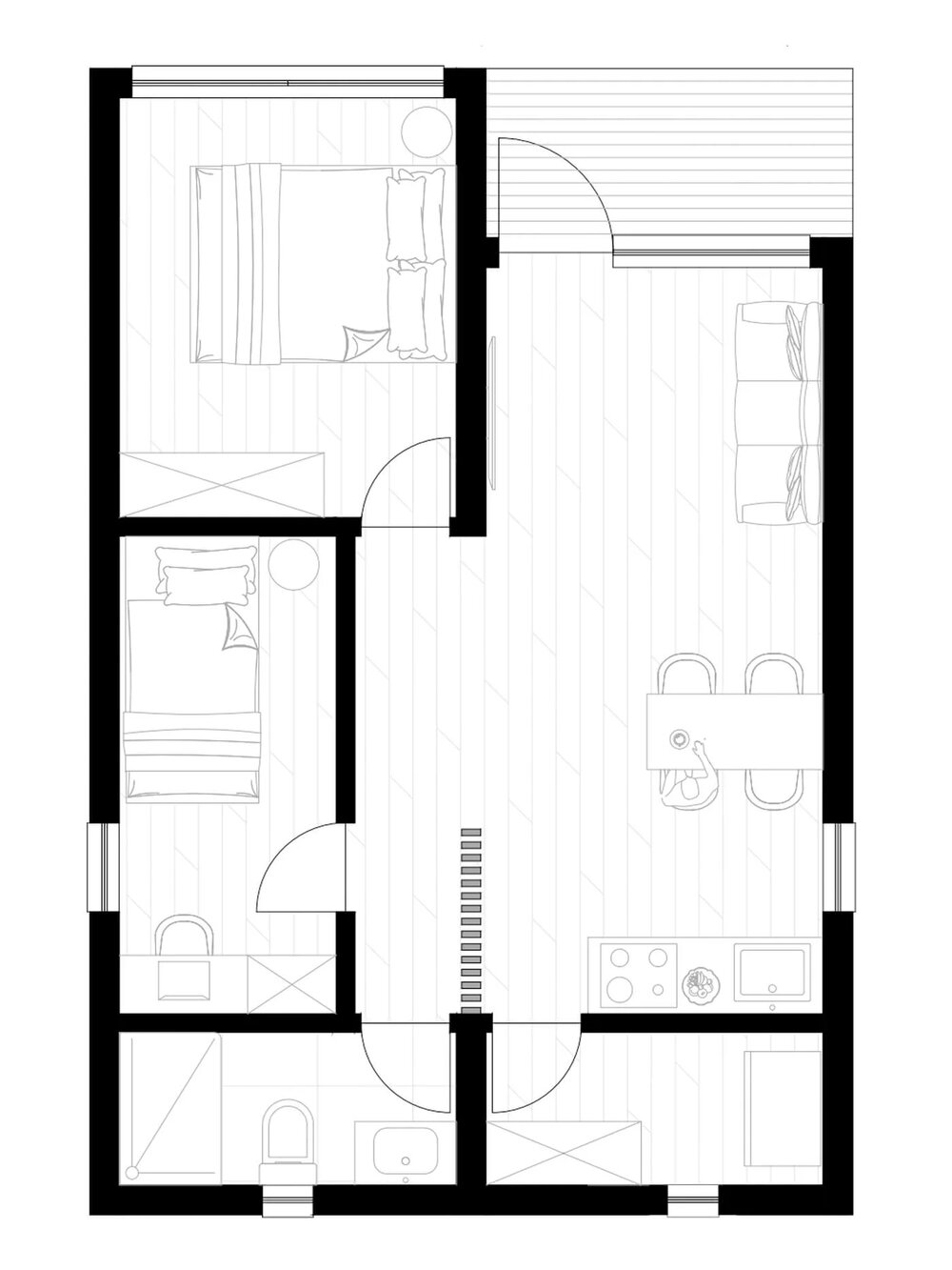 Resonance es una casa prefabricada modular construida por Palladium Corporation, un fabricante de casas prefabricadas con sede en Rumanía. Esta casa prefabricada ofrece 50,2 m² de espacio habitable, con 2 dormitorios y 1 baño.