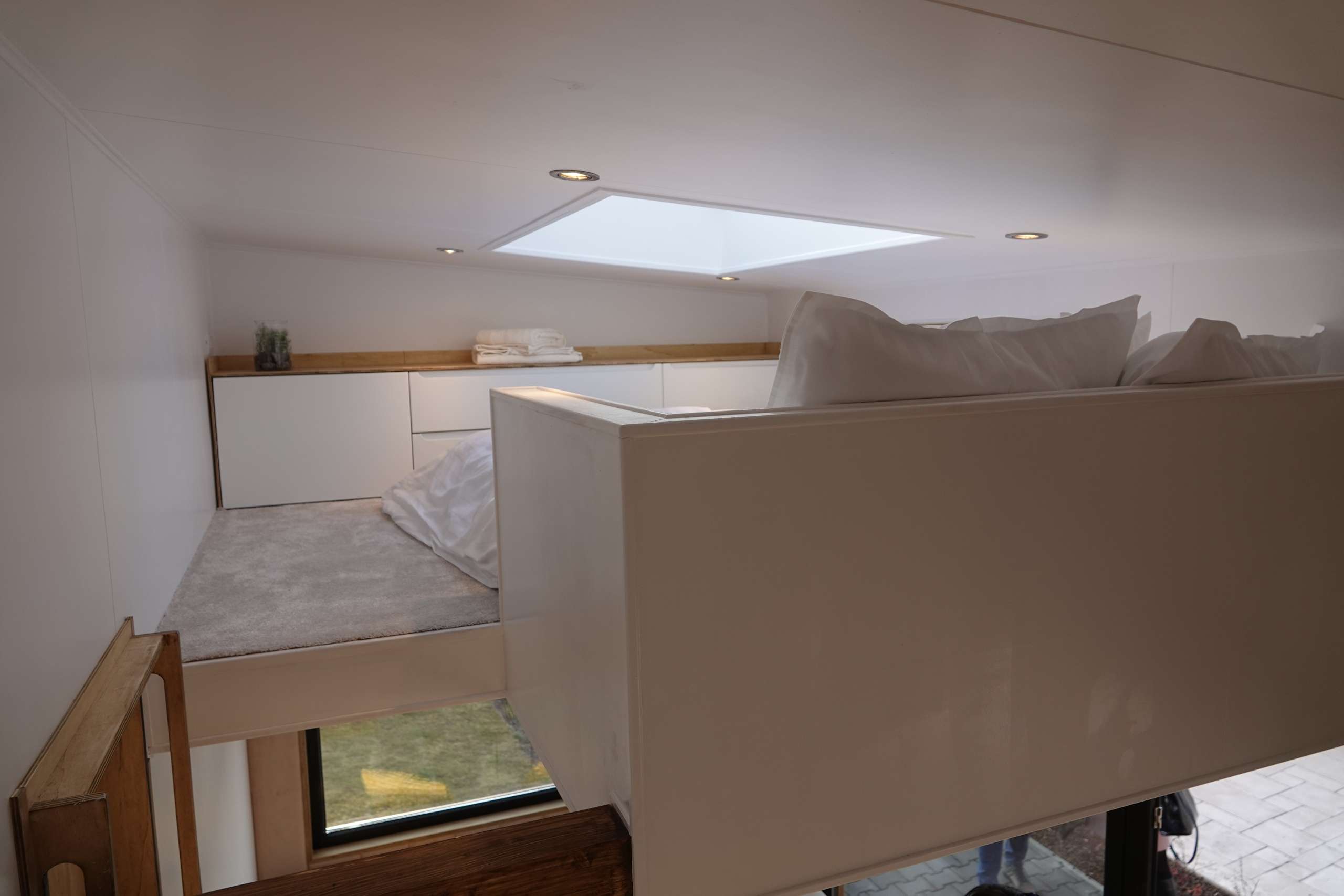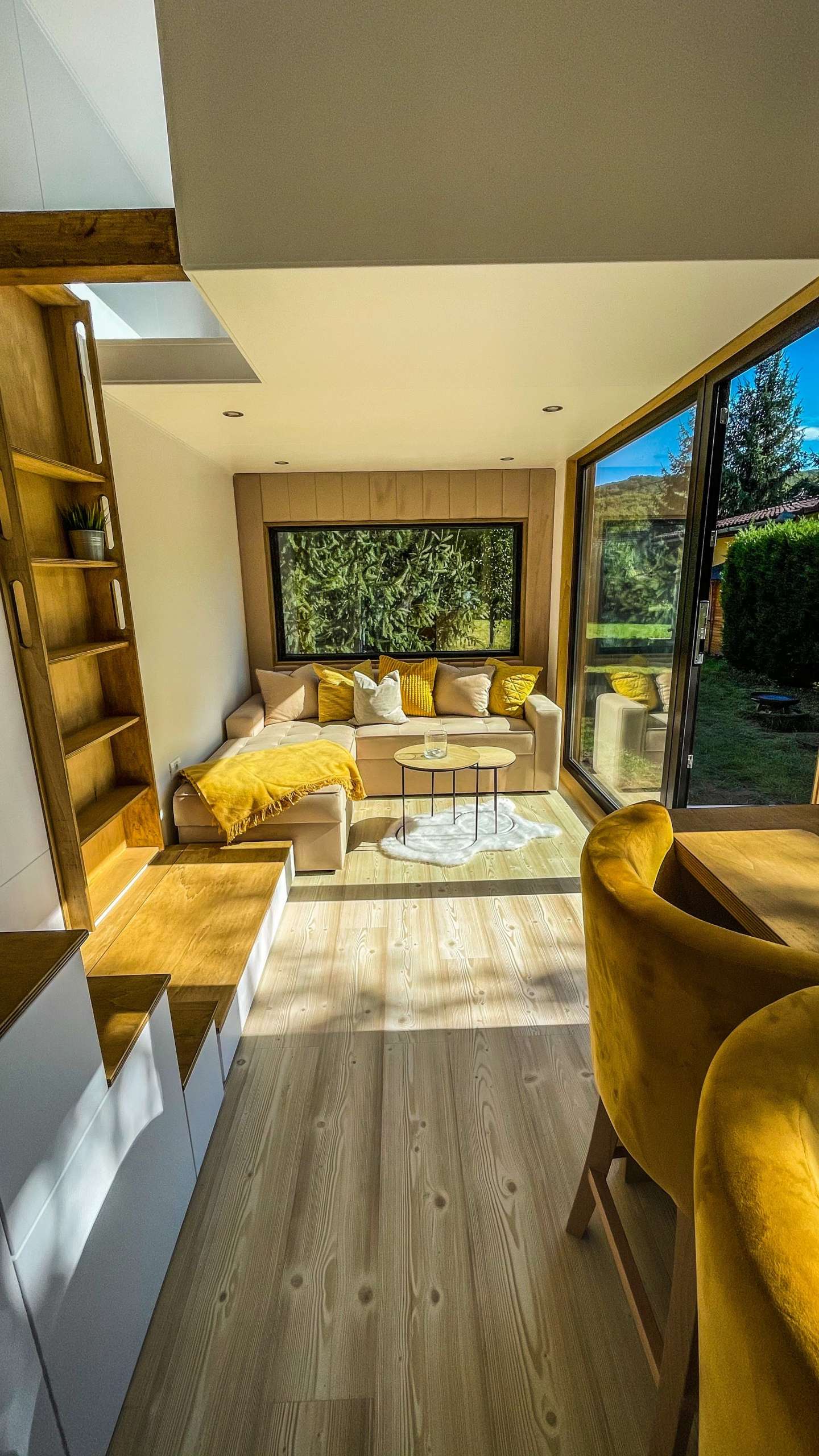 ¡Equipamos cada una de nuestras Tiny house con espacio de almacenamiento adecuado para una Tiny house de vacaciones! Construimos cajones de almacenaje bajo la escalera, el sofá e incluso bajo la cama.
