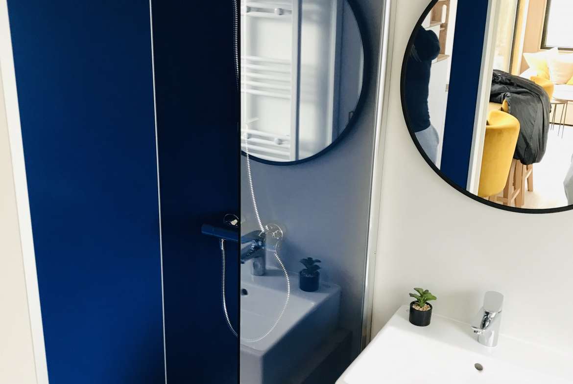 Equipamos cada Tiny house con fregadero, placa de cocina y horno. Además, nuestro cuarto de baño es espacioso y cómodo para cualquier estatura. ¡Todo es cuestión de Comfort!