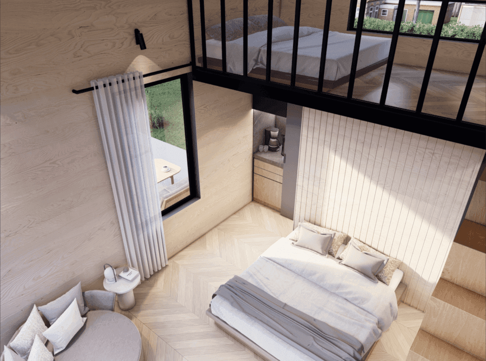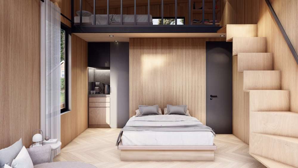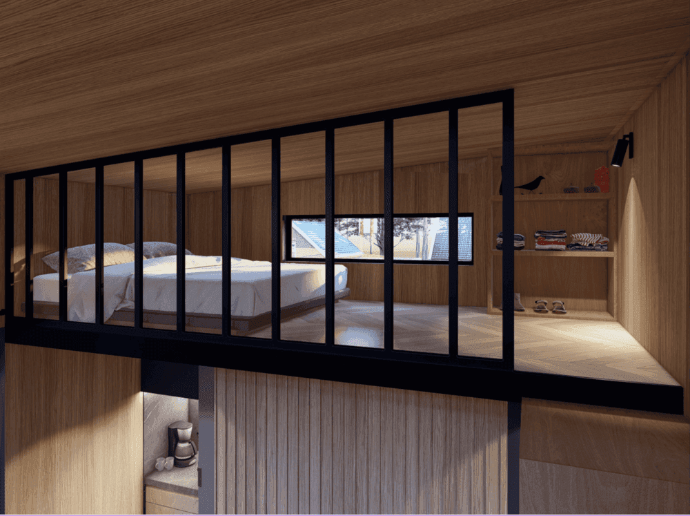 Tiny Loftcabin es una cabaña modular vendida por Tiny, una empresa con sede en Holanda. Esta Cabina ofrece 20 m² de espacio habitable, con capacidad para dos personas.