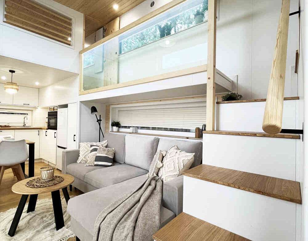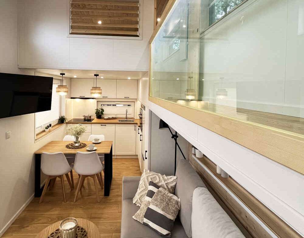 River est une Tiny house construite par Aurora Company, un Fabricant basé en Pologne. Cette Tiny house offre 31,9 m² d’espace de vie pouvant accueillir jusqu’à 4-6 personnes.