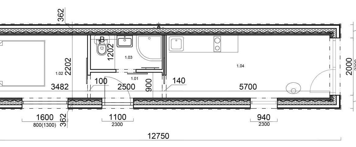 1blokki home est l'endroit idéal pour un week-end ou un séjour de vacances pour ceux qui veulent passer le plus de temps possible à l'extérieur tout en appréciant le confort d'un lit chaud. Un simple conteneur de 12,75 m a été transformé en une solution optimale pour tous ceux qui rêvent d'une petite cabine, rentable et nécessitant peu d'entretien, tout en offrant un confort suffisant.DÉTAILS Type de maison : Maison container Surface habitable : 26 m² Dimension extérieure : 12,75 x 2,83 mINFORMATIONS IMPORTANTES : Délai de livraison : 2-3 mois Montage : environ 2 semaines Standard : clé en main avec cuisine et poêle à bois en optionSPÉCIFICATIONS : Plan d « étage : Séjour principal, chambre à coucher, salle de bain Surface construite : 36 m² Surface habitable : 26 m² Isolation : 12-14 cm de mousse PUR pulvérisée Classe d'efficacité énergétique : classe B, maison à faible consommation d » énergie Fenêtres : fenêtres à triple vitrage Chauffage/refroidissement : chauffage électrique par le sol Façade : bardage en bois (ou en option) Fondations : piliers en béton (semelles)INCLUS DANS LE PRIX : Bâtiment complet et fini en standard clé en main Installation complète de l'électricité, de l'eau et des eaux usées Ventilation complète Salle de bain équipée DessinsNON COMPRIS DANS LE PRIX : Cuisine et cuisinière en acier Grue pour soulever le bâtiment du camion Fondations Raccordement aux installations électriques, d'eau et d'eaux usées Transport Installation sur siteRemarque : les frais d'expédition varient considérablement. Veuillez nous communiquer la position GPS de votre propriété et nous serons ravis d'établir un calcul pour vous.