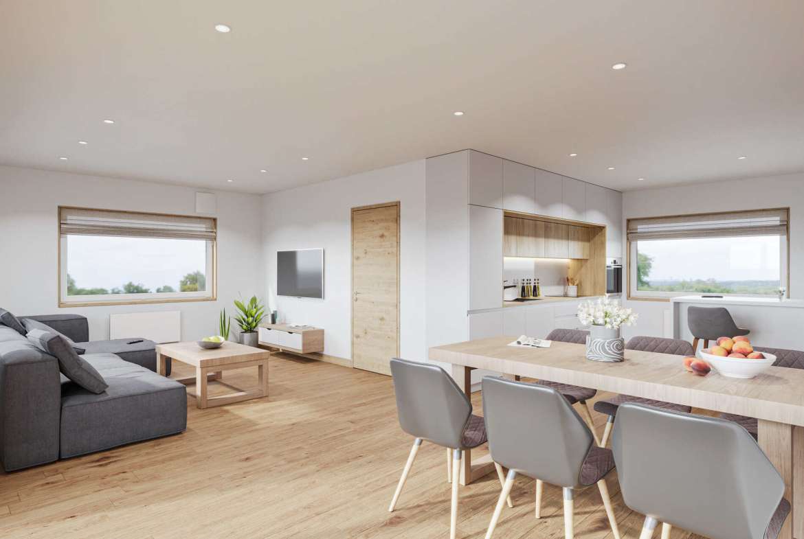 TRIOMOD 94 V3 est une maison modulaire construite par NOVA TEQ, un Fabricant de préfabriqués basé en Ukraine. Cette maison modulaire offre une surface habitable de 77 m², avec deux chambres et une salle de bain.