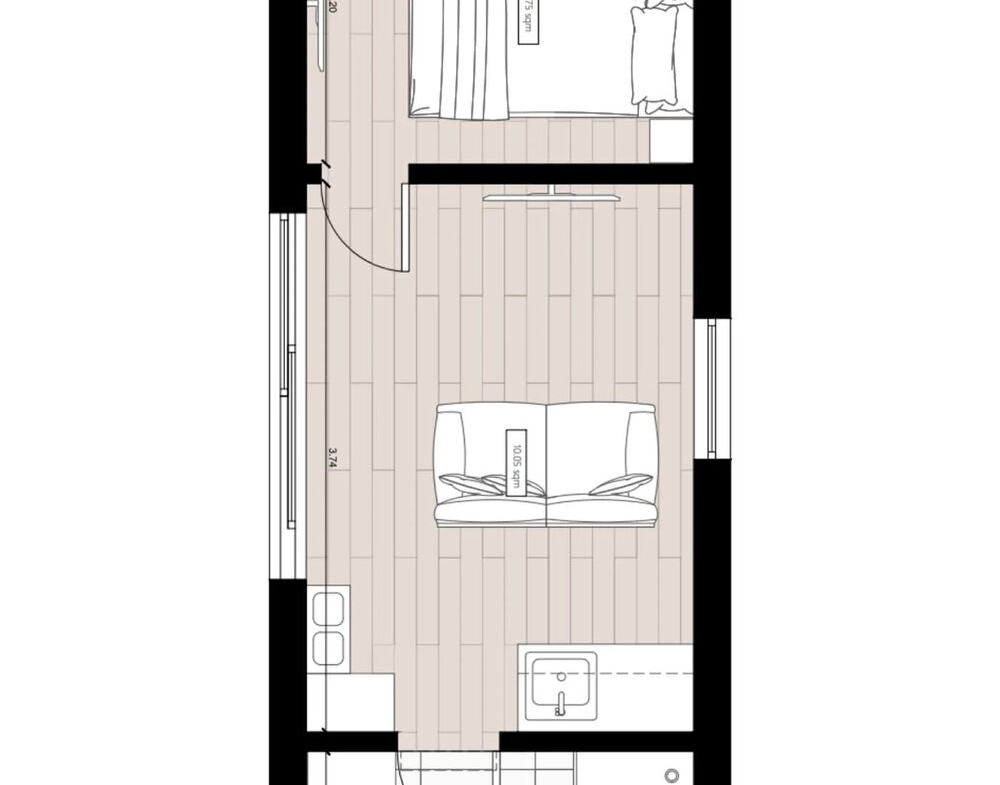 1 Lit 1 Bain 25.6 sqm Surface Construite