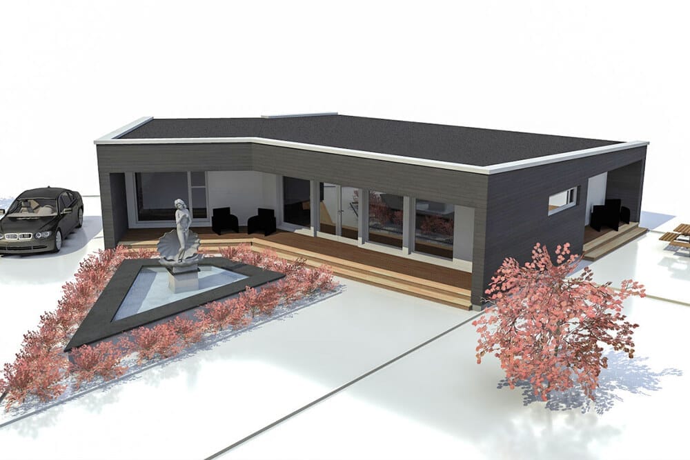 Bona 140 est une maison préfabriquée à ossature en bois construite par Vitbuve, un Fabricant de préfabriqués basé en Lettonie. Cette maison préfabriquée offre une surface habitable de 118,8 m2, avec 3 chambres et 2 salles de bains.