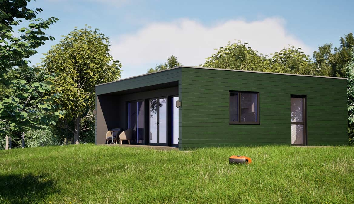 Bona 54 est une maison préfabriquée à ossature bois construite par Vitbuve, un Fabricant de préfabriqués basé en Lettonie. Cette maison préfabriquée offre une surface habitable de 54,7 m2, avec 2 chambres et 1 salle de bain.