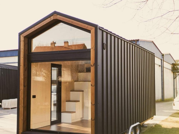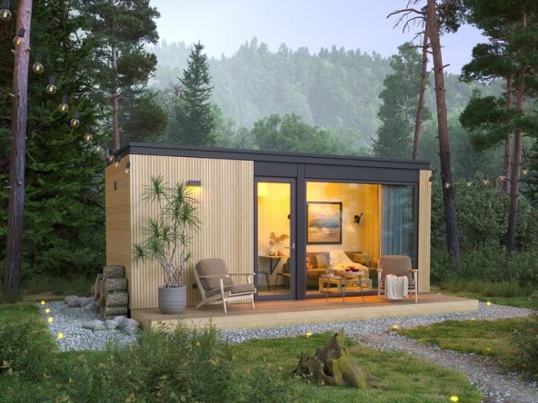 Compact Cabin est une cabine construite par Woodville, un fabricant de préfabriqués basé en Espagne. Cette cabine offre un espace de vie de 32,8 m², pouvant accueillir deux personnes.