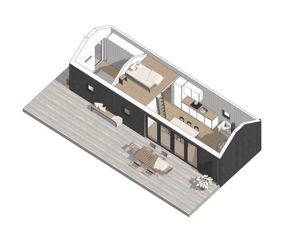 Atelje 50 is a modular house built by Ateljé Houses, a prefab manufacturer based in Sweden. This cabin provides 50m2 of living space, with one bedroom and one bathroom.
