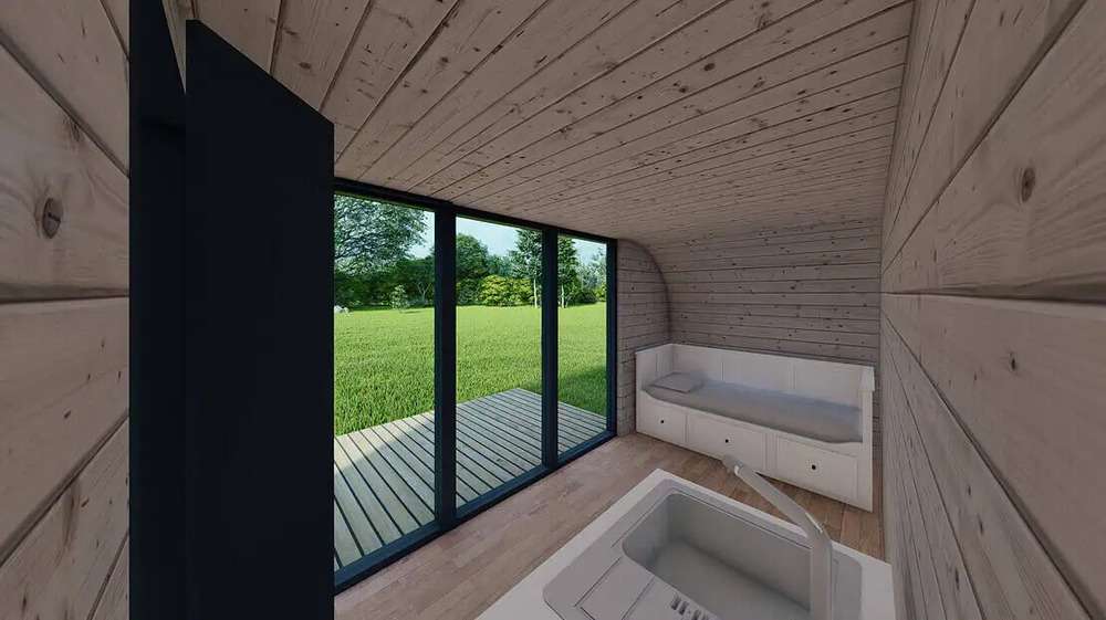 Selby is a modular cabin built by Dolena, a manufacturer based in Lithuania. This cabin provides 12.6 m² of living space, which can accommodate 2 people.