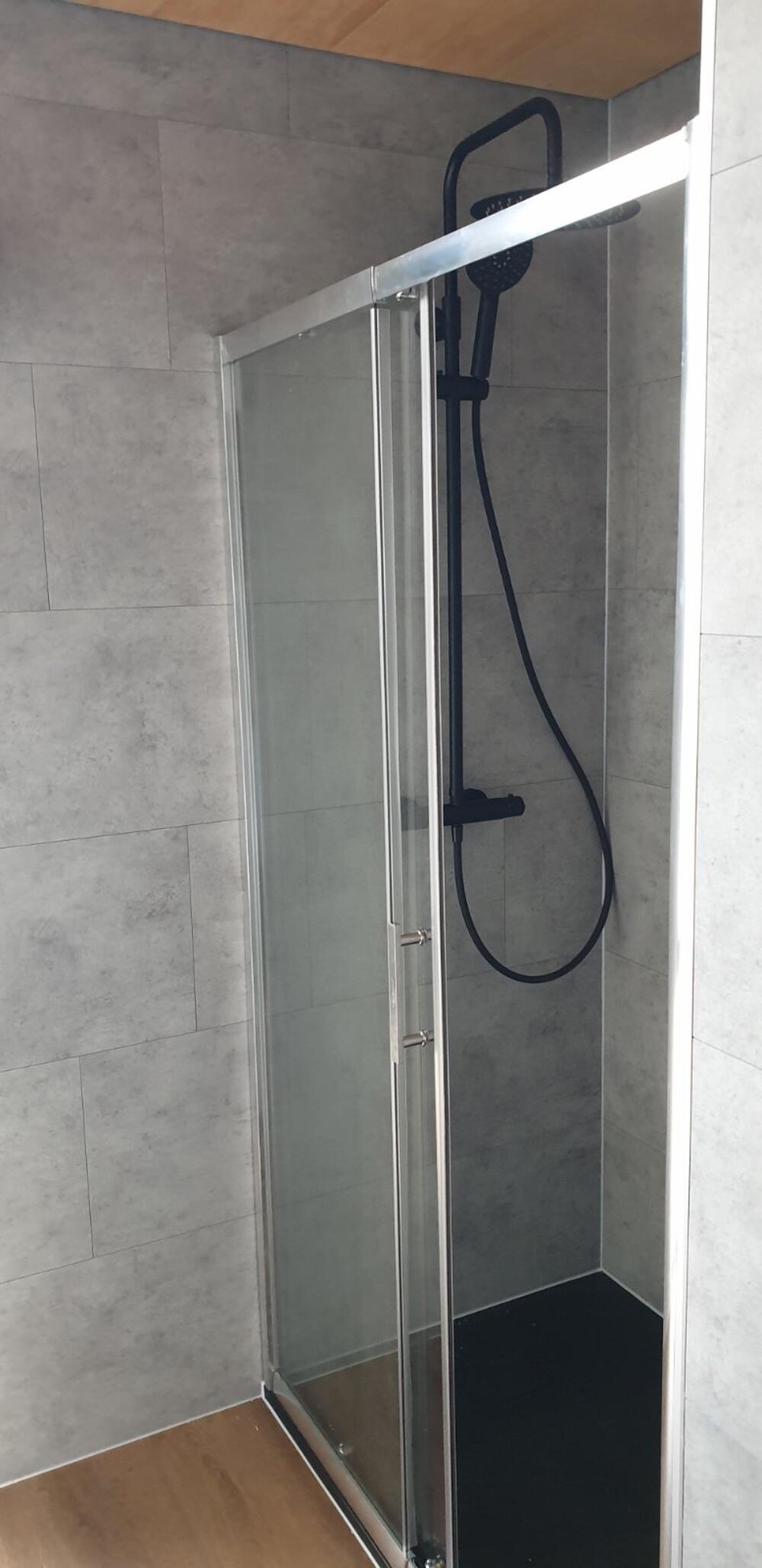 a spacious and comfortable bedroom, and a modern bathroom with toilet —