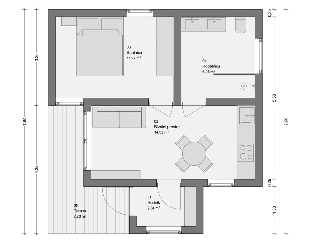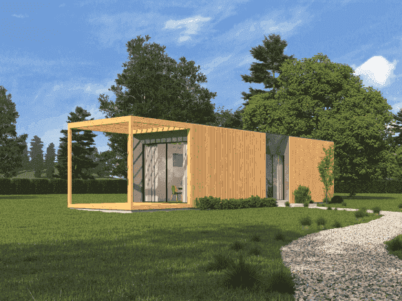 Cubie 45 is a modular home built by Hrovat, a manufacturer based in Slovenia. This prefab house provides 45 m² of living space, with one bedroom and one bathroom.