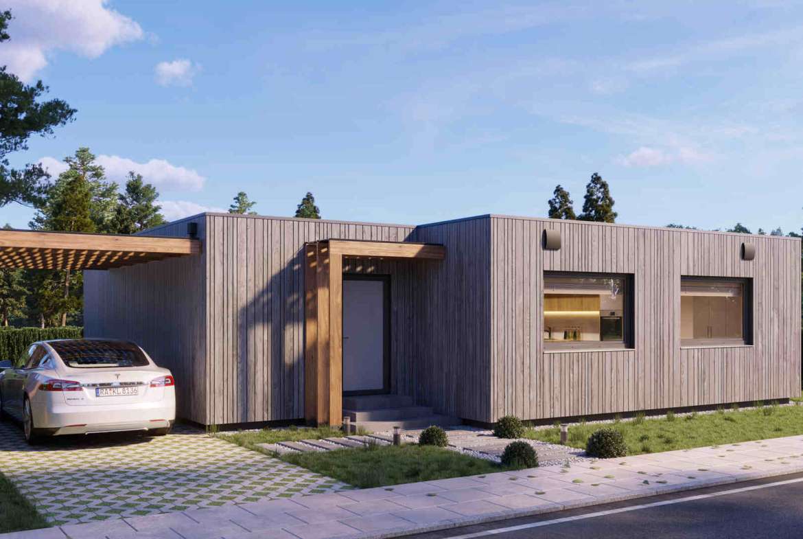 TRIOMOD 94 V2 is a modular house built by NOVA TEQ, a prefab manufacturer based in Ukraine. This modular house provides 77 m² of living space, with two bedrooms and one bathroom.
