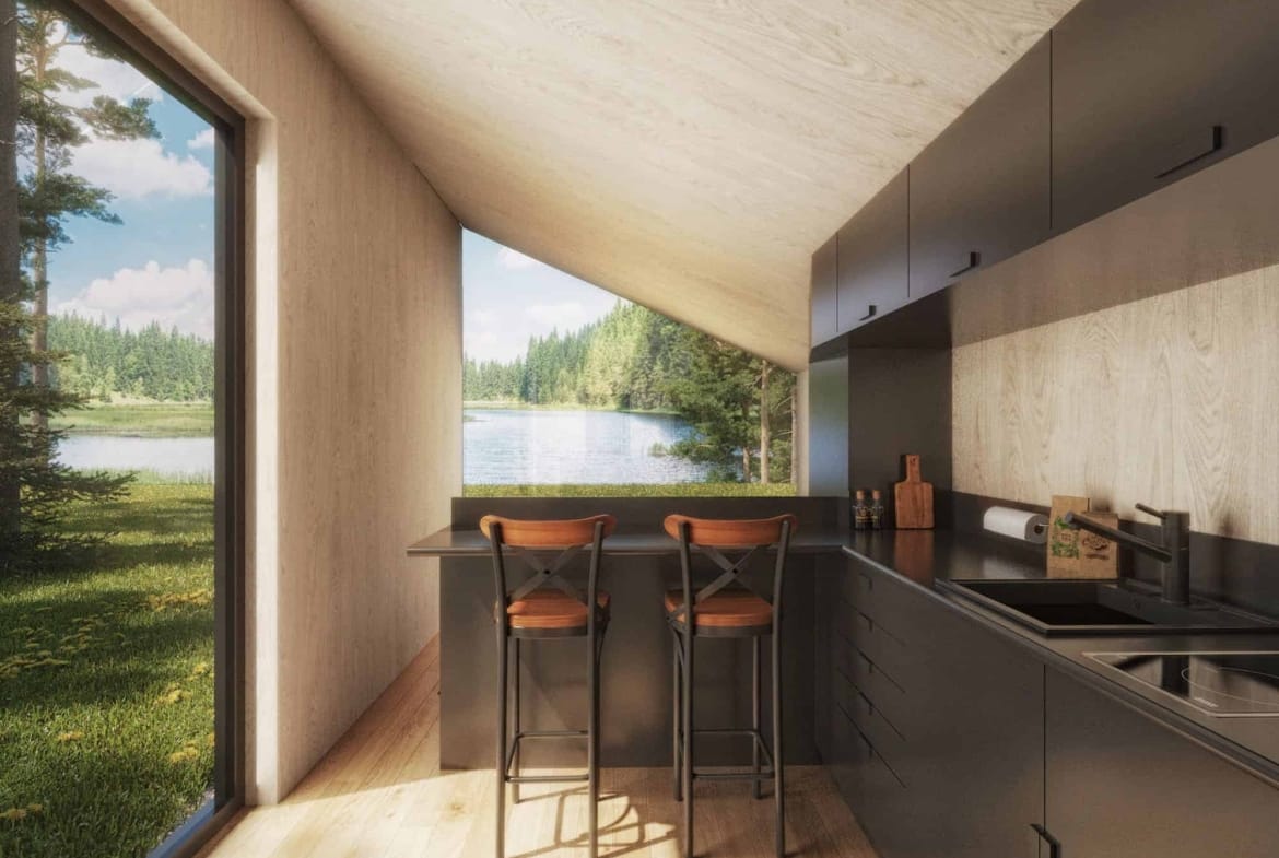 The Wild Cabin is a modular cabin built by Wildernest, a manufacturer based in Belgium. This cabin offers 18m2 of living, which can accommodate 2 people.
