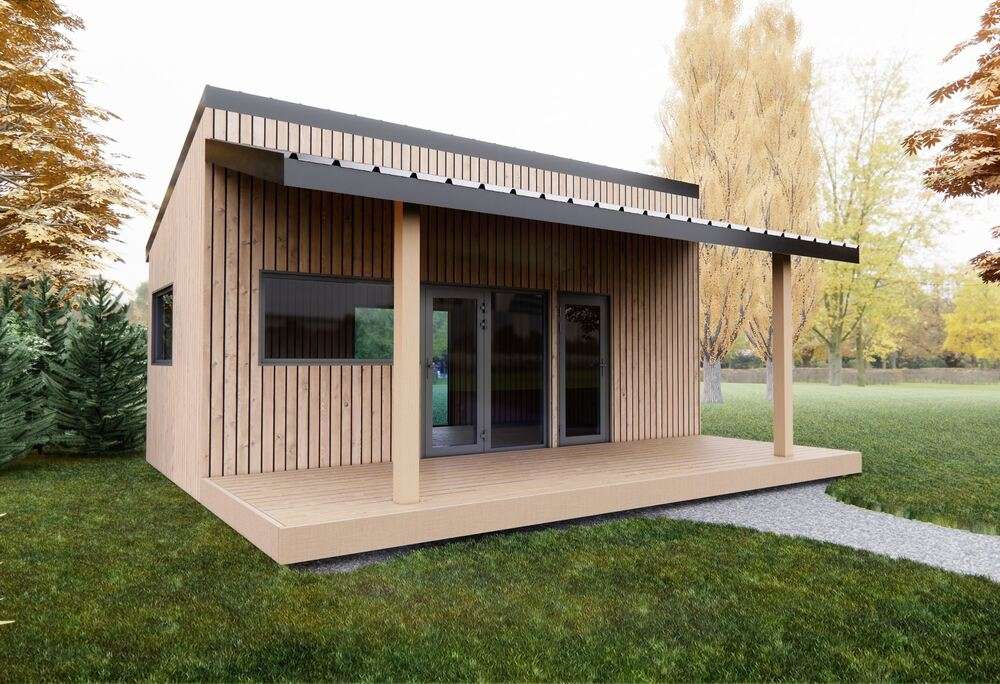 €23.800, inclusief een houten frame C24, warme afstand van ~200mm, drie ramen met dubbele beglazing, geprofileerd metalen dak, gevel van fijn gezaagde houten planken van een halve pond (industrieel geschilderd), OSB-vloer, en stoom-, bovenwindse/waterdichte bescherming.