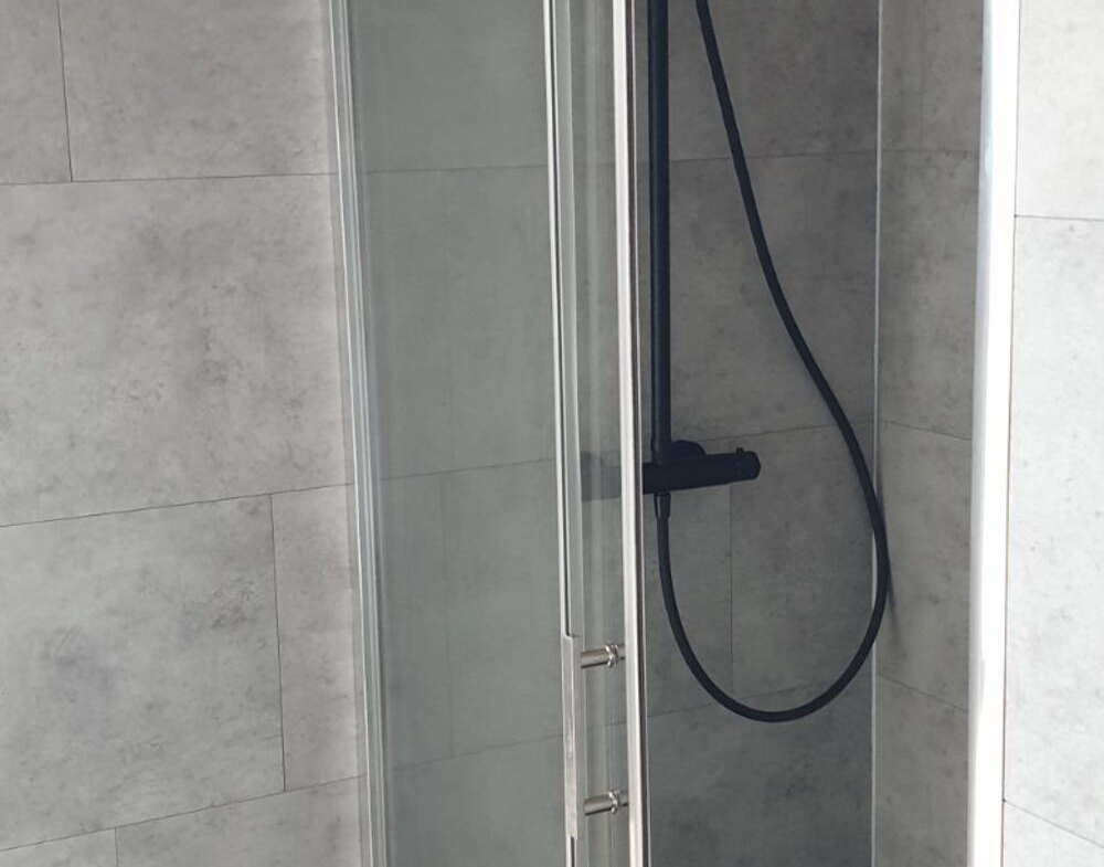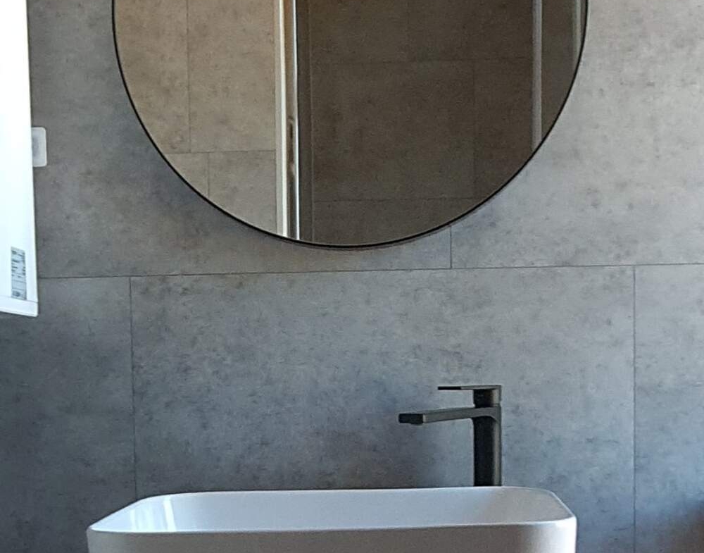 zachte moderne muurverlichting, en een badkamer uitgerust met