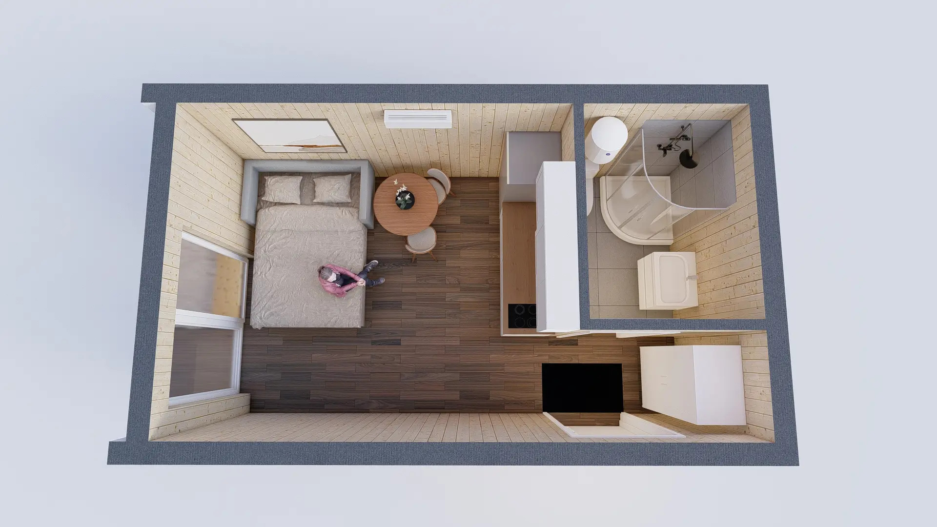 MOD TINY 21 is een prefab huis gebouwd door ModHouse, een prefab fabrikant gevestigd in Litouwen. Dit prefab huis biedt 18 m² woonruimte en is geschikt voor 2 personen.