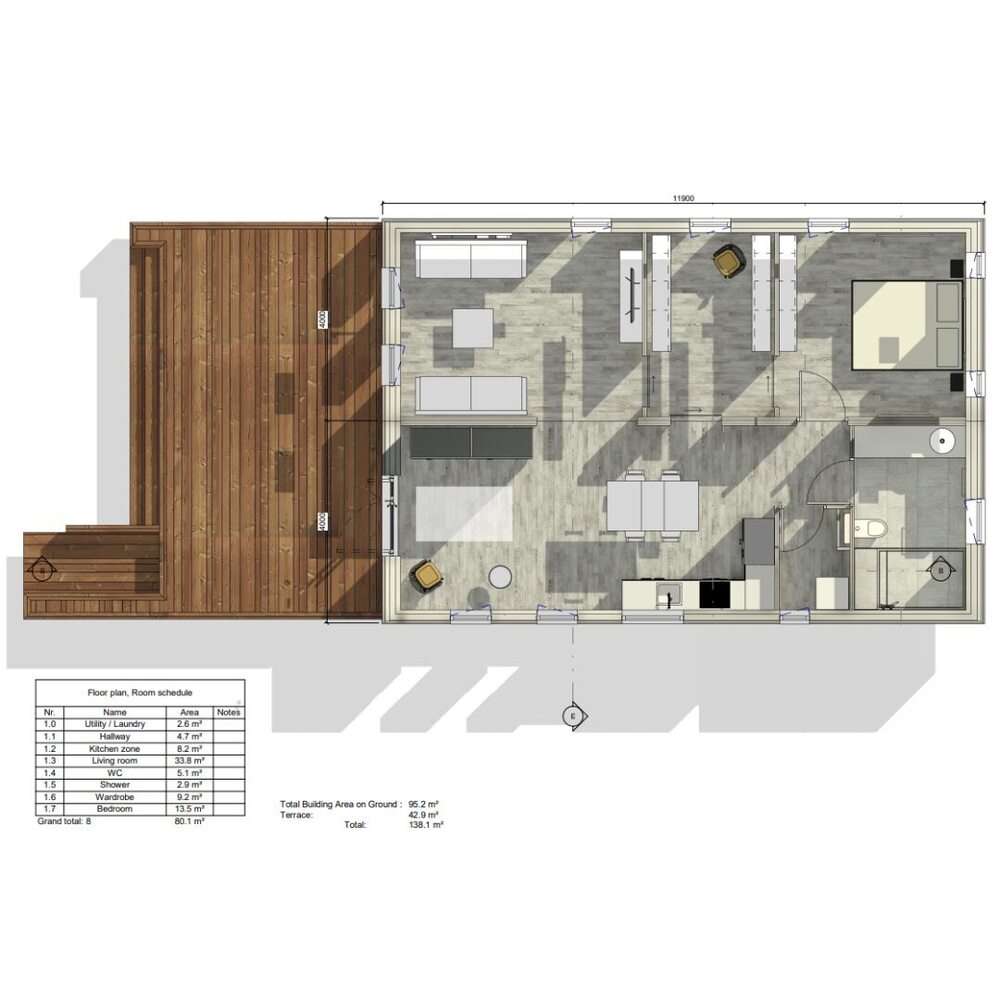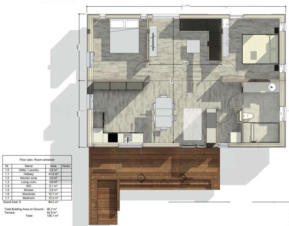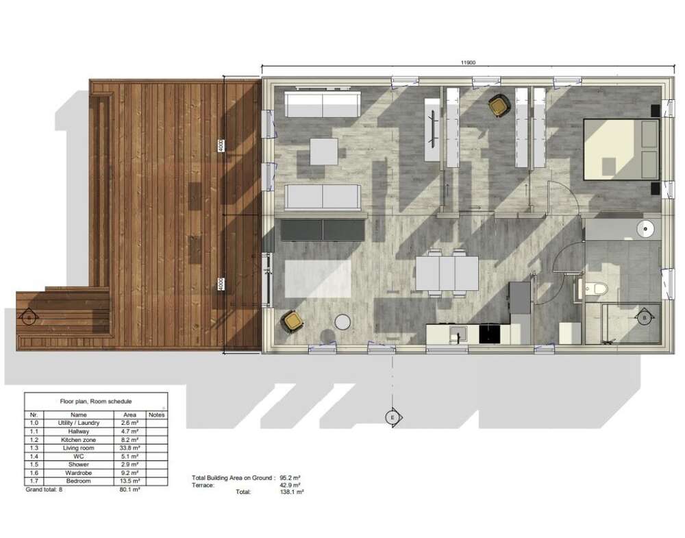 Haven XL is een modulaire woning gebouwd door VMS houses, een prefab fabrikant gevestigd in Letland. Dit huis biedt 95,2 m² woonruimte, met 3 slaapkamers en 2 badkamers.