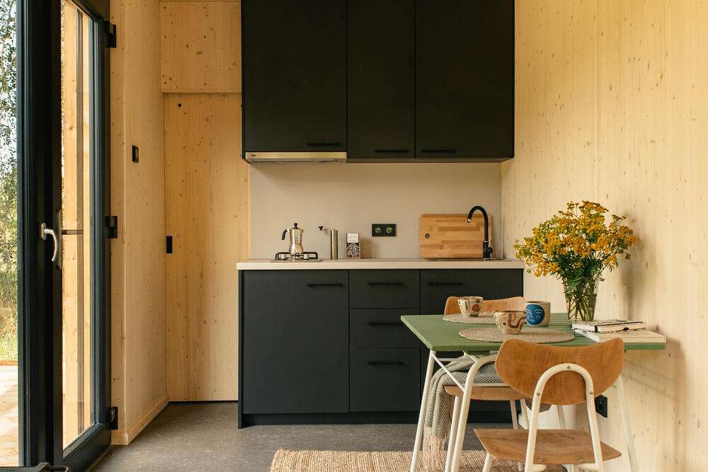 Blokki mini off-grid er et flaggskip for rekreasjon!Vår off-grid-teknologi med hybrid solenergianlegg, vindturbin, kassettoalett, vedfyrt stålovn og regnvannshåndtering gjør at du ikke trenger å være tilkoblet offentlig strøm, og er et ideelt valg for fritidsboliger året rundt.MiniPlanløsningen byr på et oppholdsrom med kjøkkenkrok, bad og et teknisk rom. Strømmen leveres av solcellepaneler og en liten vindturbin og lagres i 12 V-batterier. En annen varmekilde og koselig atmosfære leveres av en enkel vedovn med platetopp. Stålovnen kan erstattes eller støttes av en komfortabel gulvvarme. Blokki mini kan samle opp regnvann, som samles i en romslig innvendig tank, renses og brukes til oppvask og spyling. Toalett løses med en kassett eller komposteringsenhet.Selvsagt tilbyr vi også Blokki mini i en on-grid-versjon!DETALJER Hustype: Containerhus Boareal: 18 m² Utvendig mål: 9m x 2,75m PRISER Pris ekskl. mva. Pris for versjon med strømnett: fra € 64,131 Pris for versjon uten strømnett: fra € 69,972VIKTIG INFORMASJON: Leveringstid: 2-3 måneder Montering: ca. 1 uke Standard: nøkkelferdig med kjøkken og vedovn som tilvalgSPESIFIKASJON: Romoppsett: 1kk (hovedoppholdsrom med kjøkkenkrok, bad) Bebygd areal: 25 m² Boareal: 18 m² Isolasjon: 10 cm hardt PUR-skum Energieffektivitetsklasse: klasse B, lavenergihus Vinduer: doble vinduer Oppvarming/kjøling: elektrisk gulvvarmefolie Fasade: trekledning (eller valgfritt) Fundament: 6 betongsøyler (fundamenter)INKLUDERT I PRISEN: Komplett og ferdig bygning i nøkkelferdig standard Møblering i svart design (kjøkkenkrok, bad, seng med oppbevaringsskuffer) Komplett elektrisk installasjon, vann- og avløpsinstallasjon TegningerIKKE INKLUDERT I PRISEN: Kran for å løfte bygningen fra lastebilen Fundamenter Tilkobling til el-, vann- og avløpsinstallasjoner Transport Installasjon på stedet Merk: Fraktkostnadene er svært varierende. Kontakt oss med GPS-posisjonen til eiendommen din, så lager vi gjerne en beregning for deg.