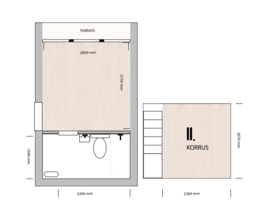 Denne modulhytta har et boareal på 24,5 m², med plass til 2 personer.