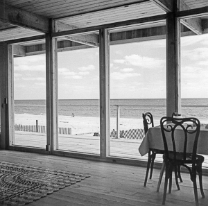 Fire Island er et sted med kontraster: det åpne Atlanterhavet på den ene siden, den lune bukten på den andre. Richard Meier fanget denne essensen ved å designe huset slik at det vendte i begge retninger. Store glasspaneler rammet inn utsikten mot havet i sør og det roligere vannet i bukten i nord. Terrasser strakte seg utover fra begge fasadene, og gjorde utendørslivet til en naturlig forlengelse av hverdagen.