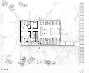 Denne ideen, som oftere brukes til rustikke hytter, ble anvendt på en skarp modernistisk design, og Lambert House skiller seg ut som et av de tidligste eksemplene på moderne prefab i USA.