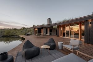 Hemmet sträcker sig utåt genom en rymlig terrass i Wooden och omfamnar landskapets naturliga konturer. Genomtänkt designad med: