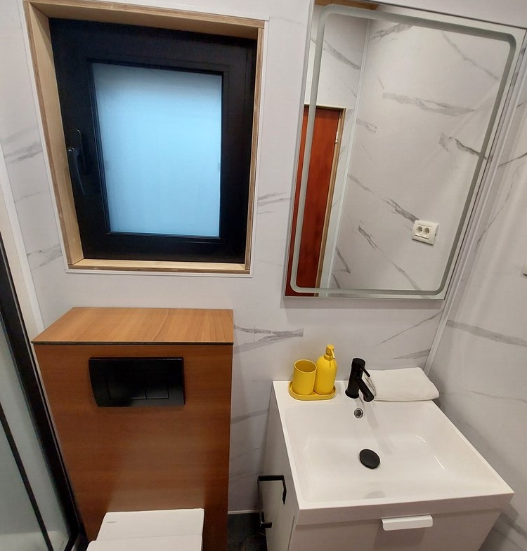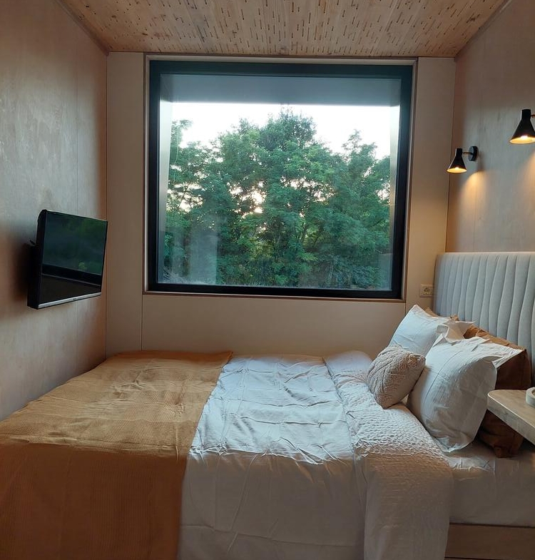 Radio är en modulär stuga byggd av Domu, en prefabtillverkare baserad i Rumänien. Den här prefabricerade stugan har en boyta på cirka 19 m², 1 sovrum och 1 badrum.