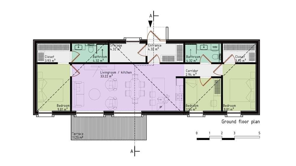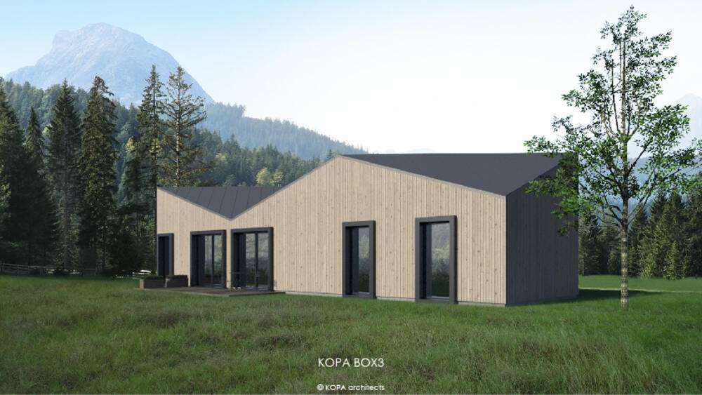 BOX3 är ett hus byggt av Liskandas, en prefabtillverkare baserad i Litauen. Detta Elementhus erbjuder 88 m² boyta med 3 sovrum och 2 badrum.