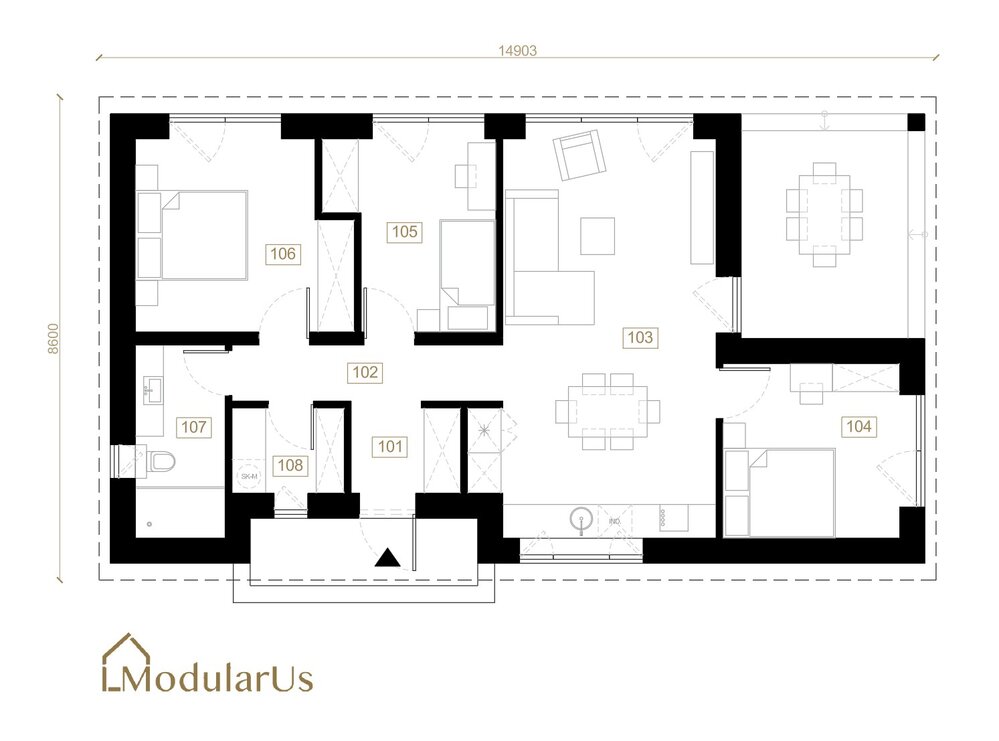 Sigrid är en modulär prefab byggd av ModularUs, en prefabtillverkare baserad i Litauen.