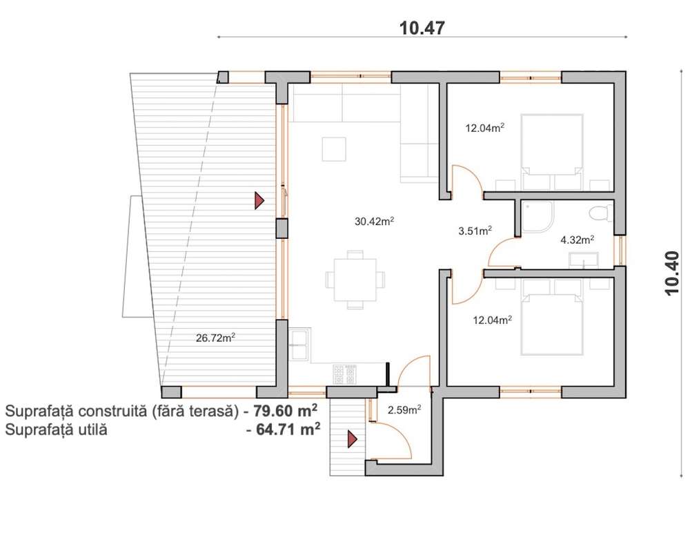 Modulo 79 är ett prefabricerat hus byggt av Modulo House, en prefabricerad tillverkare baserad i Rumänien. Detta hus erbjuder 79 m² boyta, med 2 sovrum och 1 badrum.