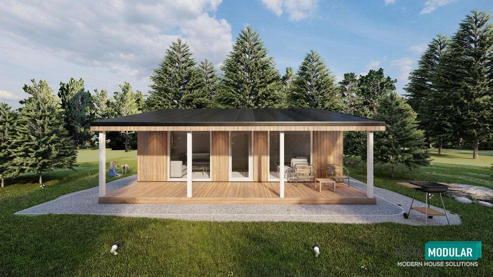 Ett annat extremt populärt modulhusprojekt. Detta hus har två sovrum och ett badrum med plats för tvättmaskin. Vardagsrummet är rymligt och erbjuder en sittgrupp för din dyrbara familjetid.