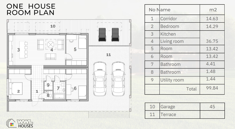 Eden House är ett prefabricerat hus byggt av WWL Houses, en prefabricerad tillverkare baserad i Lettland. Detta prefabricerade hus har en boyta på 98 m², 3 sovrum och 2 badrum.